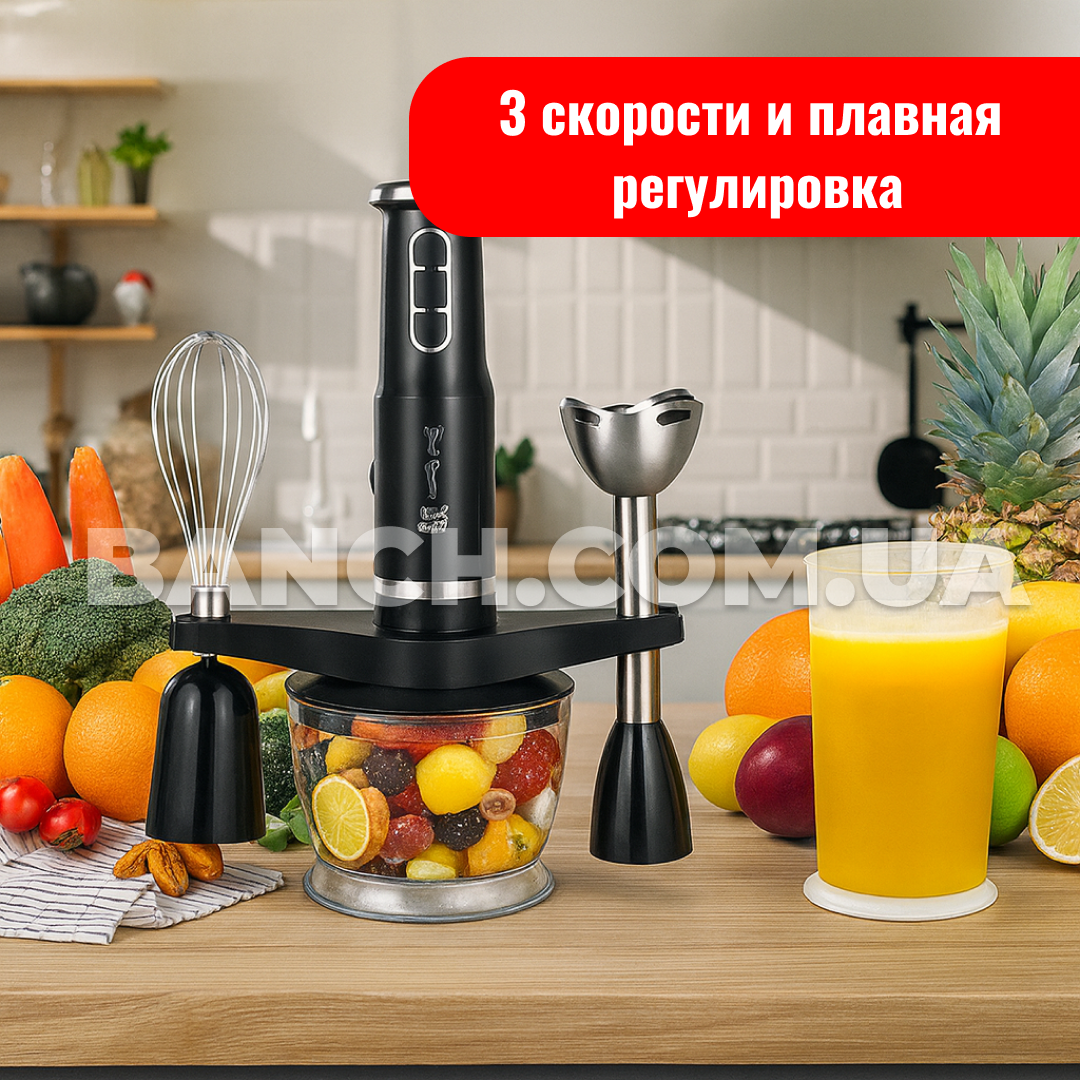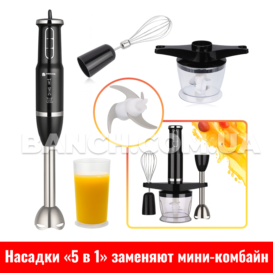Заглибний блендер Hoffmans HM-8029 — це багатофункційний кухонний помічник, створений для швидкого та зручного приготування різних страв. Завдяки потужності 1000 Вт і трьом швидкостям він легко обробляє як м'які, так і тверді продукти. Надійні ножі з неіржавкої сталі забезпечують ефективне подрібнення, а продумана комплектація «5 в 1» дає змогу замінити відразу кілька кухонних пристроїв. Блендер ідеально підходить для смузі, крем-супів, соусів, пюре, коктейлів і навіть дроблення льоду. Компактний, стильний і зручний — він стане незамінним приладом для будь-якого кухонного простору.